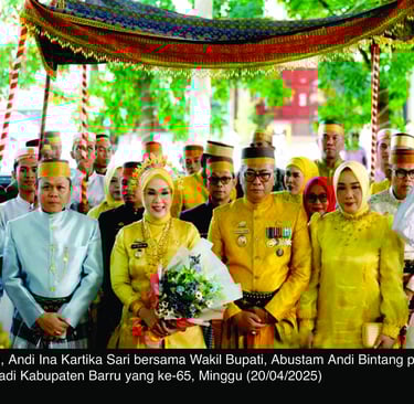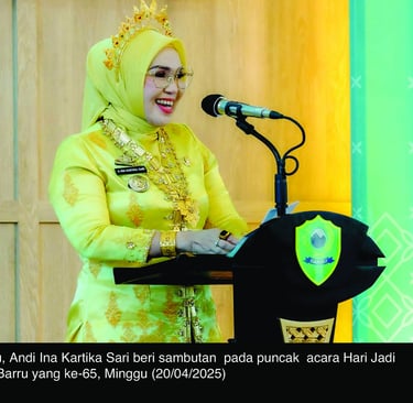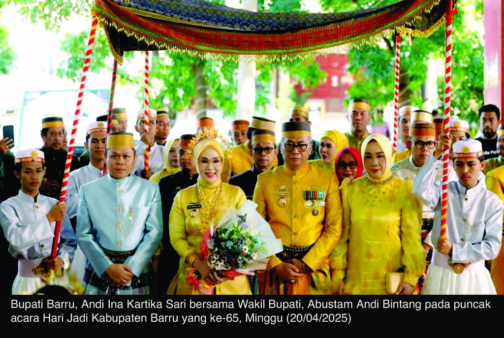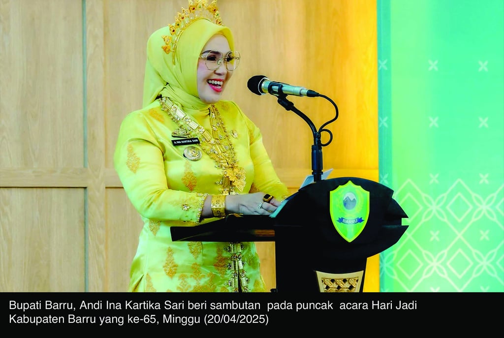 BARRU, lentersulawesi.online - Pada Usianya yang telah beranjak dari 65 tahun, Kabupaten Barru yang kini dipimpin oleh Andi Ina Kartika Sari dan Abustam Andi Bintang, mengambil thema peringatan Hari Jadi yaitu akselerasi pembangunan yang kolaboratif, produktif, dan bernafaskan keagamaan menuju Barru berkeadlain, maju berkelanjutan, serta sejahtera lebih cepat.