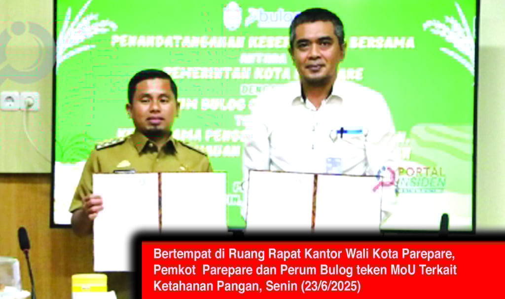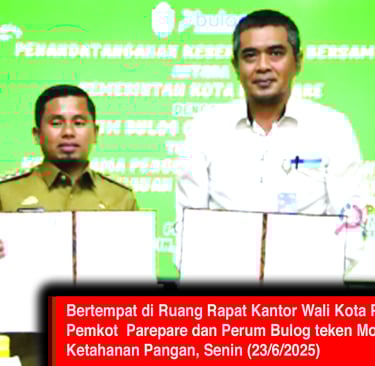 PAREPARE, lenterasulawesi.online - Berlansung di Ruang Rapat Kantor Wali Kota Parepare, Kota Parepare, Sulawesi Selatan (Sulsel), Senin (23/6/2025), Pemerintah Kota (Pemkot) Parepare bersama Perum Bulog Cabang Parepare resmi menandatangani nota kesepahaman atau Memorandum of Uderstanding (MoU) terkait pengelolaan ketersediaan, keterjangkauan, dan stabilitas pangan, khususnya dalam pelaksanaan prog ram bantuan beras sejahtera (Rastra).